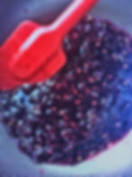 To make the grape reduction you simply add all the ingredients to a saucepan and cook until the grapes lose their shape and the mixture is reduced. There is no need to separate the skins from the grapes for this recipe as you often do for most jam recipes.